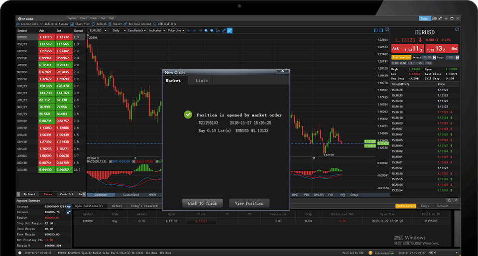 Sau khi cài đặt thành công, bạn sẽ nhìn thấy biểu tượng 「CF Global Trade」, nhấn đúp vào biểu tượng và nhập mật khẩu tài khoản là có thể tiến hành giao dịch